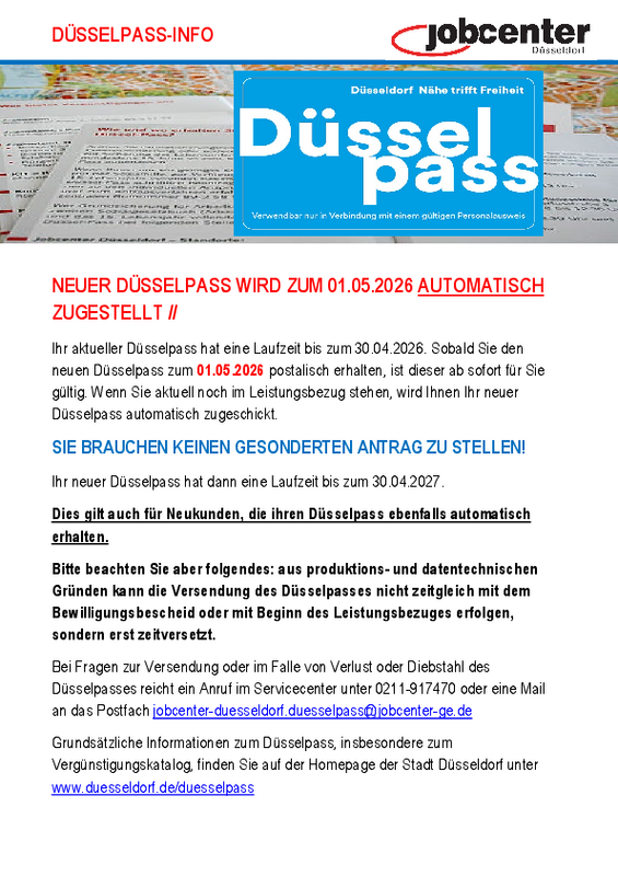 NEUER DÜSSELPASS WIRD ZUM 01.05.2026 AUTOMATISCH ZUGESTELLT!
