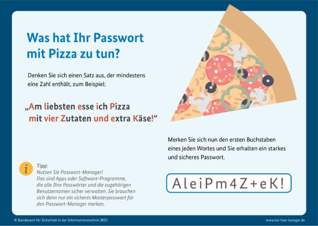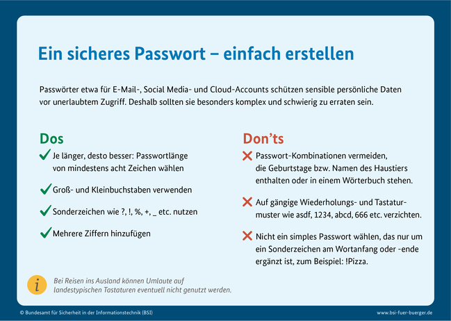 - Wählen Sie ein Passwort, das Sie sich gut merken können. Ein Passwort, das auf einem Zettel steht, ist nicht sicher.