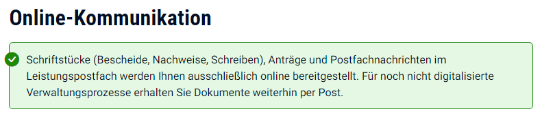 - Es gibt noch keine Dokumente, die hier angezeigt werden können. Aktuell kann nicht jeder Bescheid oder Nachweis online zugestellt werden.